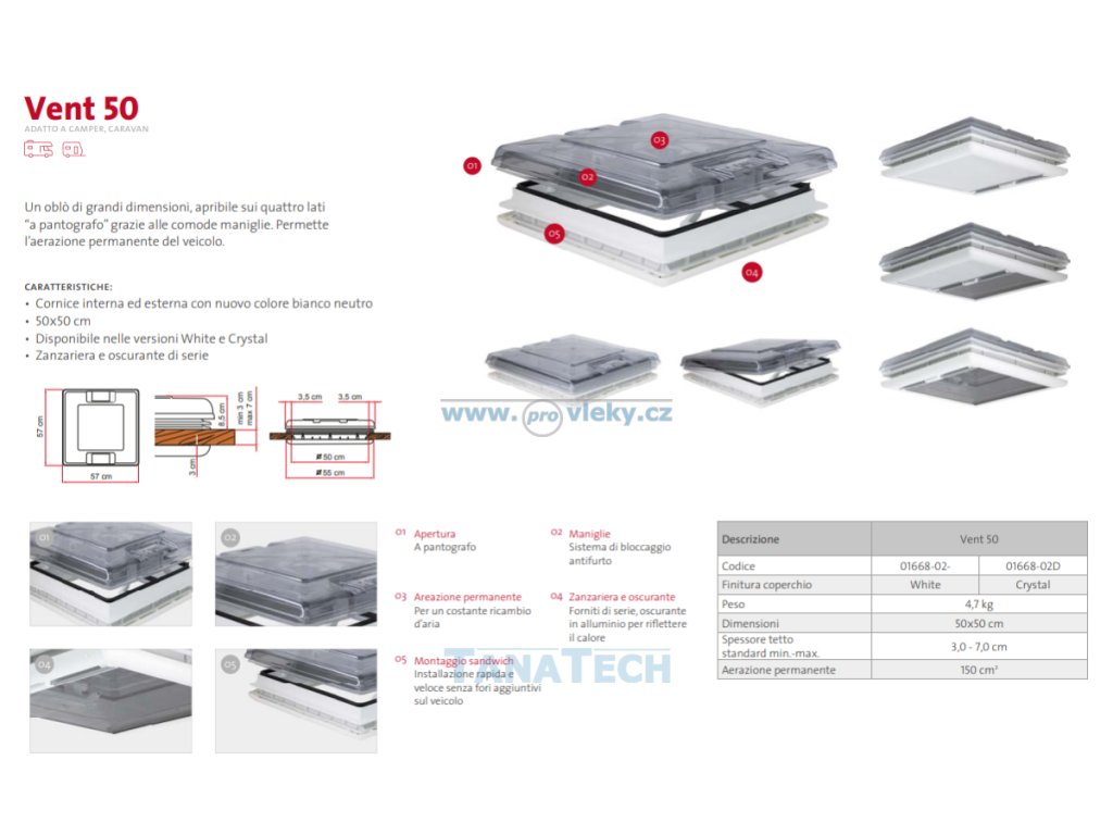 Bílý střešní větrací světlík 500x500 Vent 50 FIAMMA