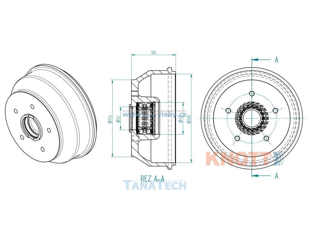 Knott brzdový buben 200x50 pro nápravy od 1350 kg do 1500 kg nebo také pro 10-palcová kola