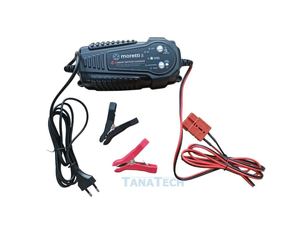 Vollautomatisches Ladegerät, das den Ladestrom basierend auf Batteriekapazität, Entladungsgrad und Typ auswählt.