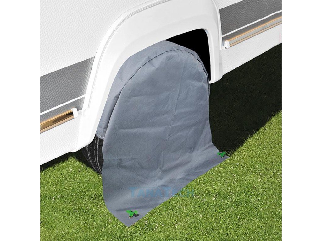 - Raddeckung für die Pneuschutz von Karavan oder Wohnwagen vor der Beschädigung, die durch langfristigen Aussetzen von Sonnenstrahlung und UV Strahlung, bewirkt ist.