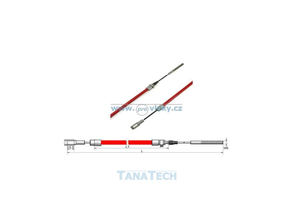 Lanovou AL-KO 1610/1865 s okem pro zaháknutí do brzdového rozpínacího zámku kolové jednotky přívěskových náprav AL-KO a na druhém konci lanovodu je závit M8 pro kulovou matici.