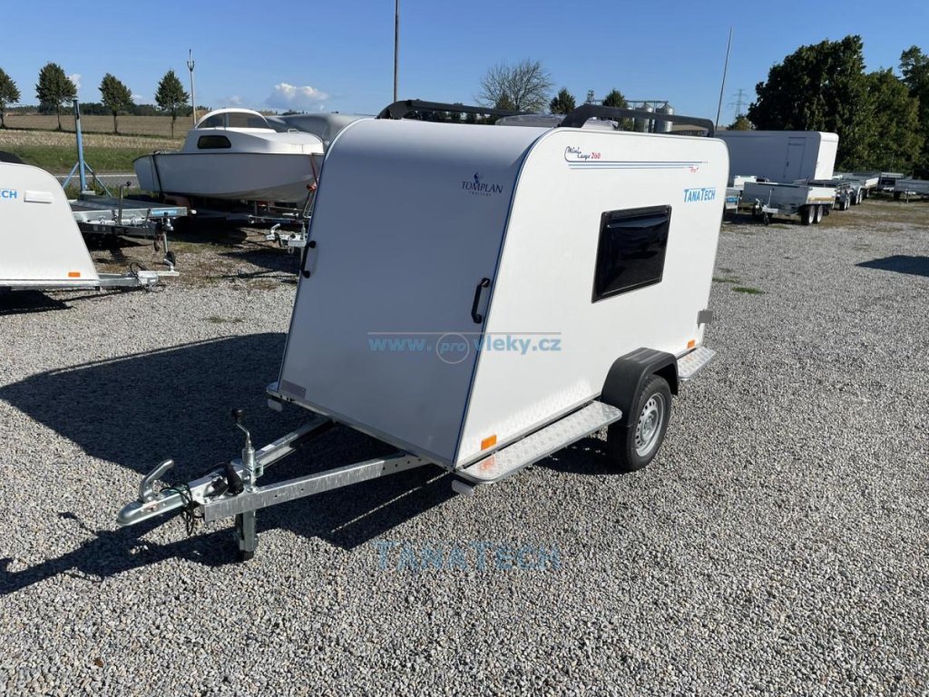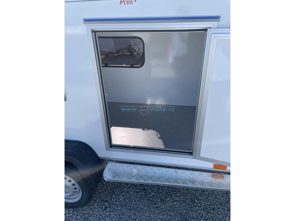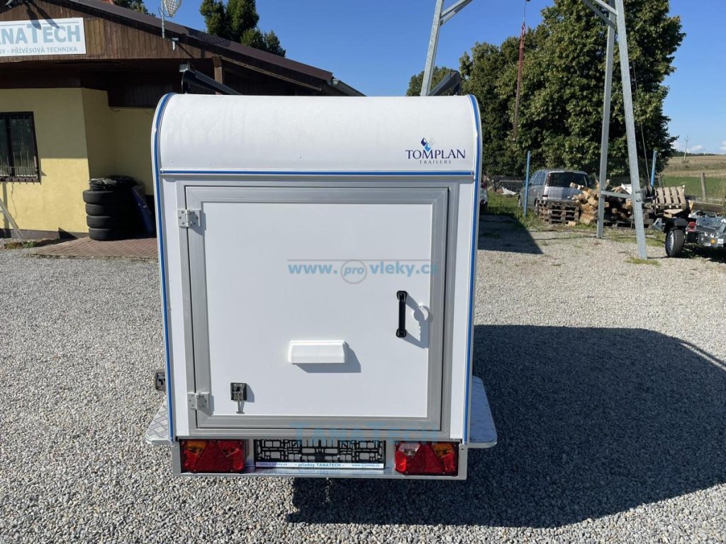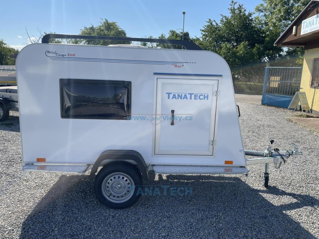 Stylový obyvatelný přívěs - základ pro minikarvan. Vhledem k šířce vhodný pro dvě osoby.