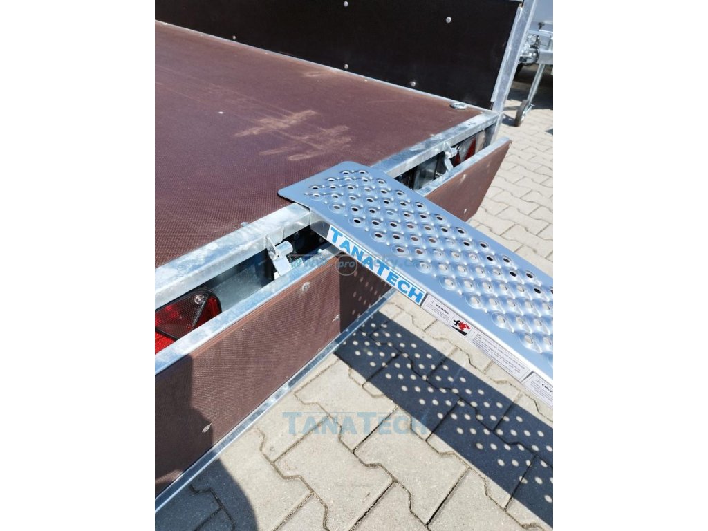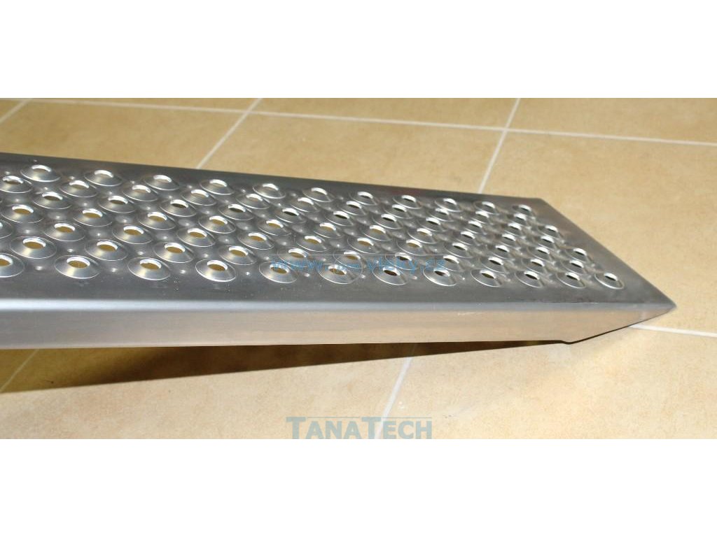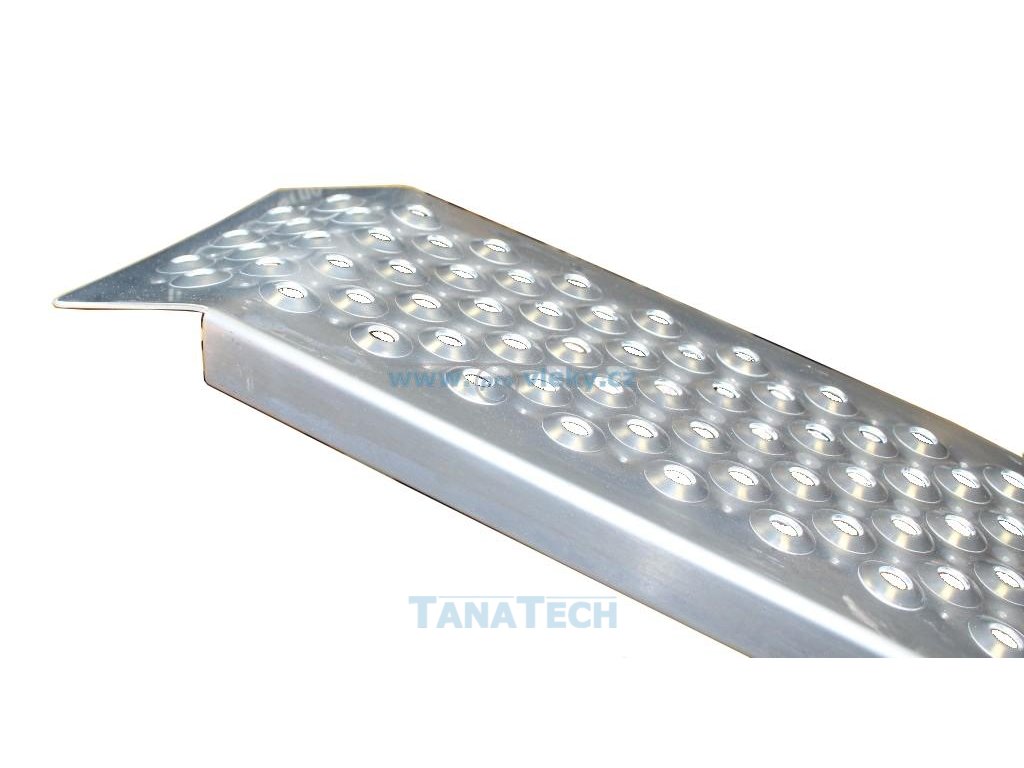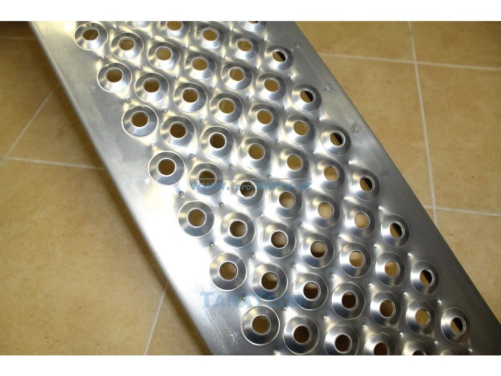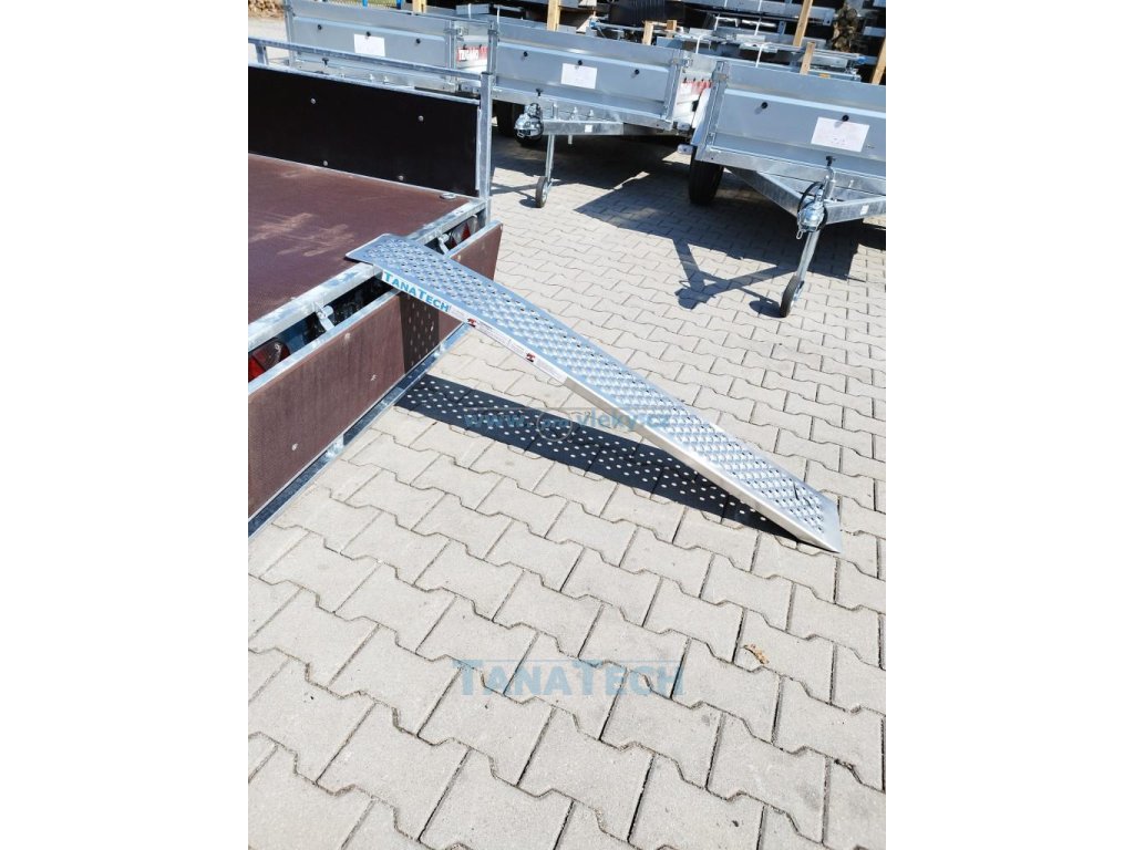 Tento prohnutý nájezd je vyroben z lehkého hliníkového profilu a je vhodný nejen k přívěsům, ale i pro najíždění do dodávek atd. Je vhodný pro nájezd zahradního traktůrku, motorky, čtyřkolky a jiné techniky.
