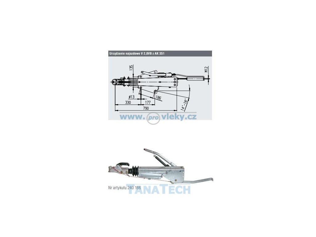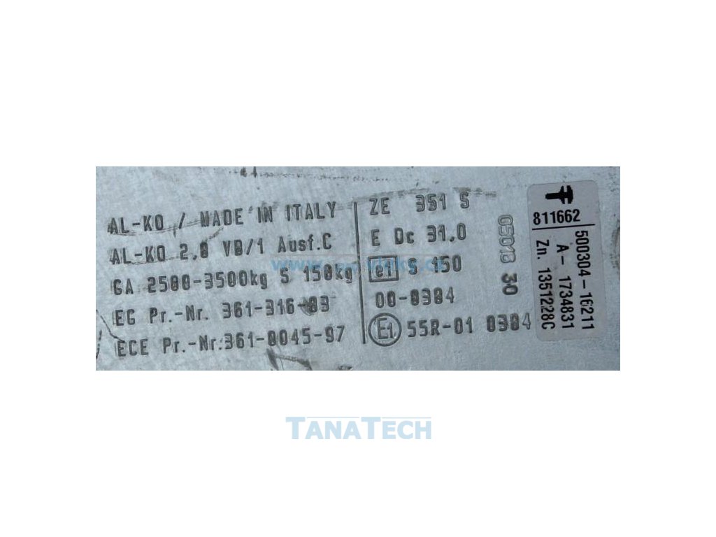 Nájezdová brzda AL-KO 2,8 VB1/-C s přívěsný kloubem pro přívěsy do celkové hmotnosti 3500kg. NB použita pro nápravy AL-KO B1800 , B1600.