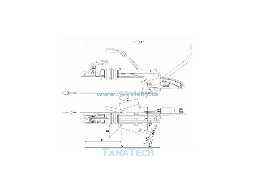 Nájezdová brzda KNOTT KF 30C s přívěsným kloubem pro přívěsy do 3000kg.