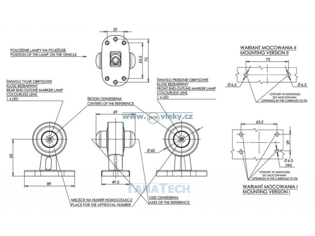 • přední obrysové světlo / obrysové zadní světlo