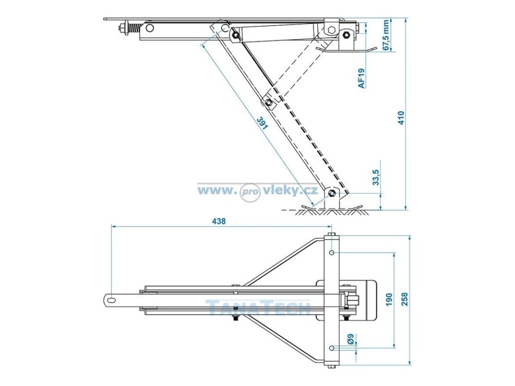 Opěrná noha karavan 500kg/ks 438x265mm, výška 410mm
