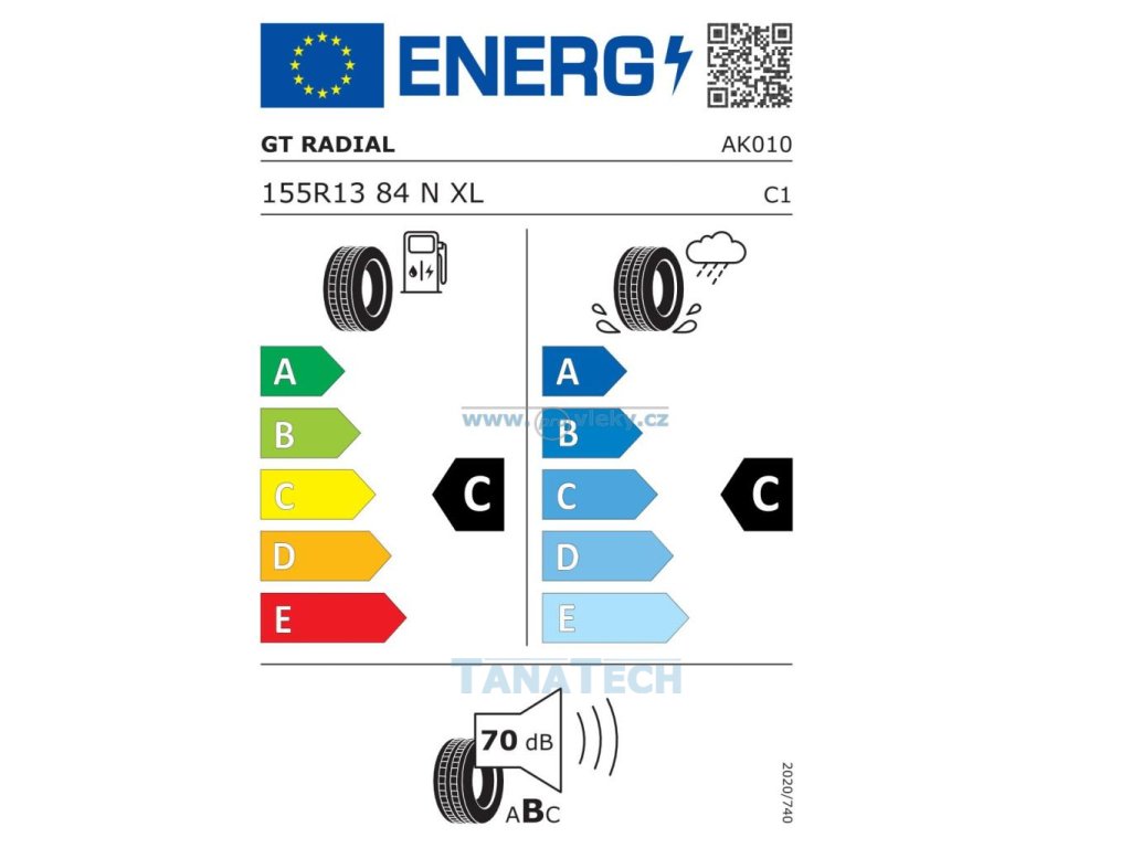 Třída přilnavosti na mokru - brzdná dráha na mokru CTřída vnějšího hluku odvalování BVnější hlučnost pneumatiky 70 dB