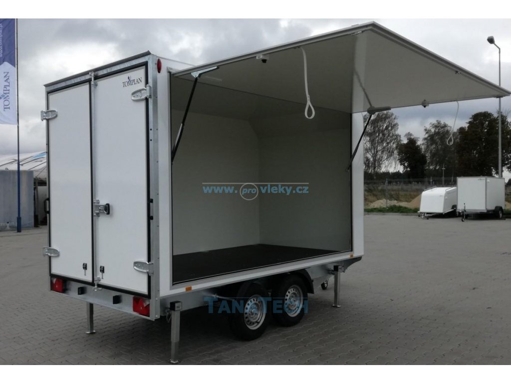 Nákladní izolované přívěsy TOMPLAN řady TFSP jsou brzděné skříňové přívěsy s koly pod ložnou plochou s mnoha možnými modifikacemi. Z boku je možné zabudovat otvíratelné klapky na plynových vzpěrách nebo vstupní dveře. Zadní část je tvořena nájezdovou rampou nebo dvoukřídlými dveřmi.