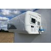 - Tuhé izolované stěny a střecha - 54mm; vyplněno styrodurem, povrch z hladkého bílého laminátu.