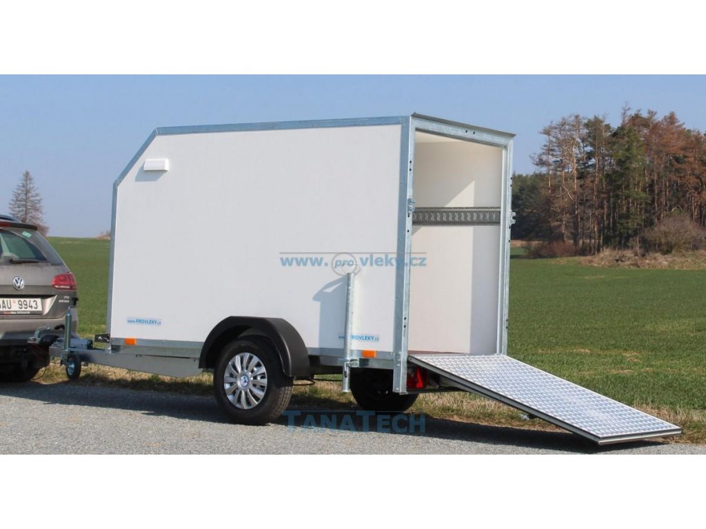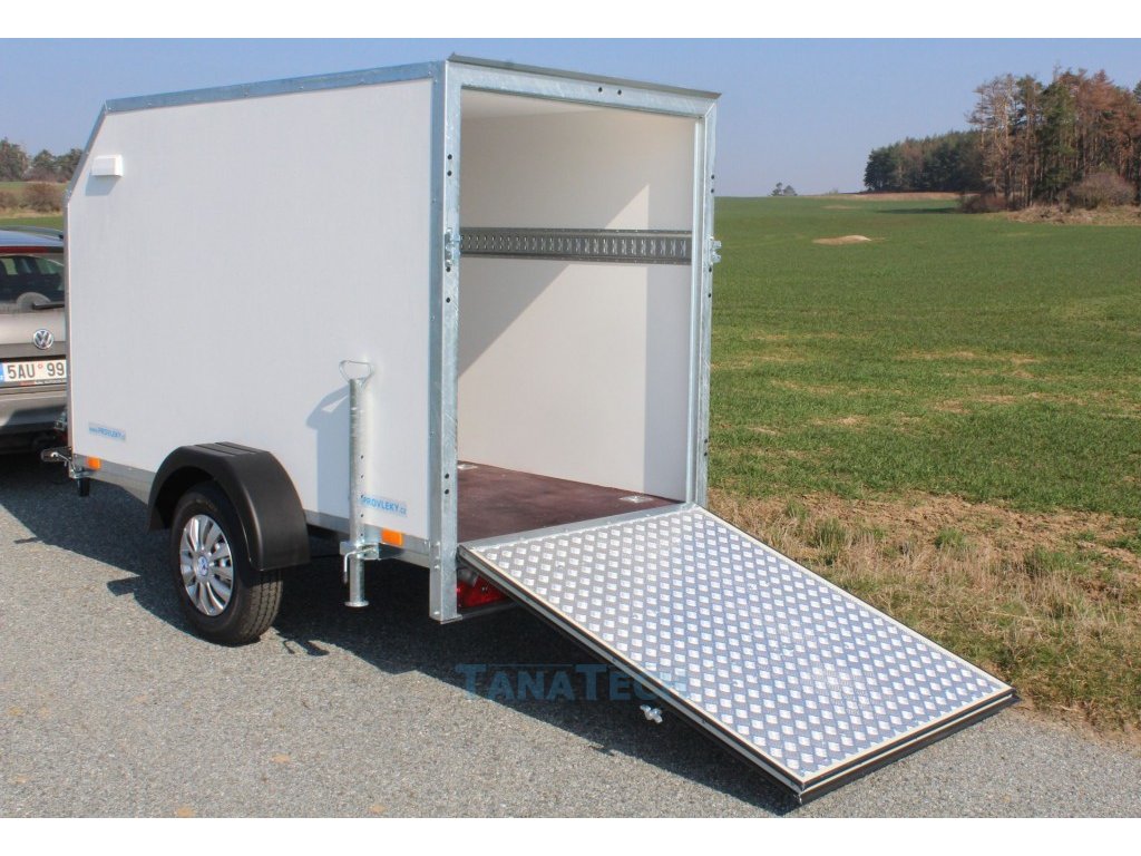 Přívěs Tomplan překližkový skříňový TFDS 250.01 1300kg rampa