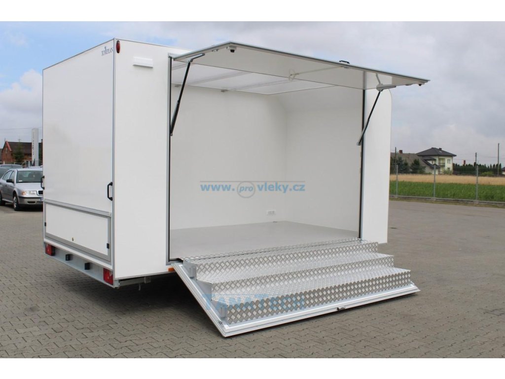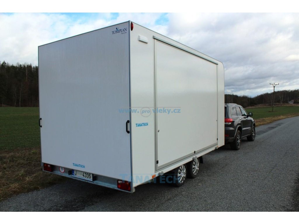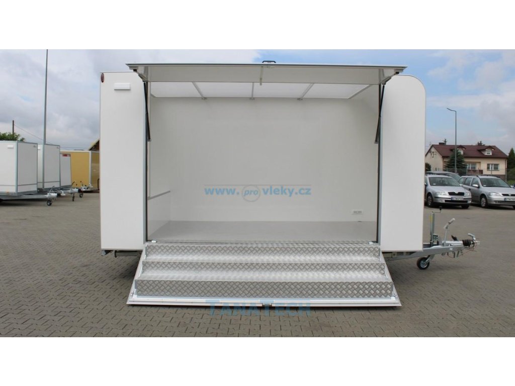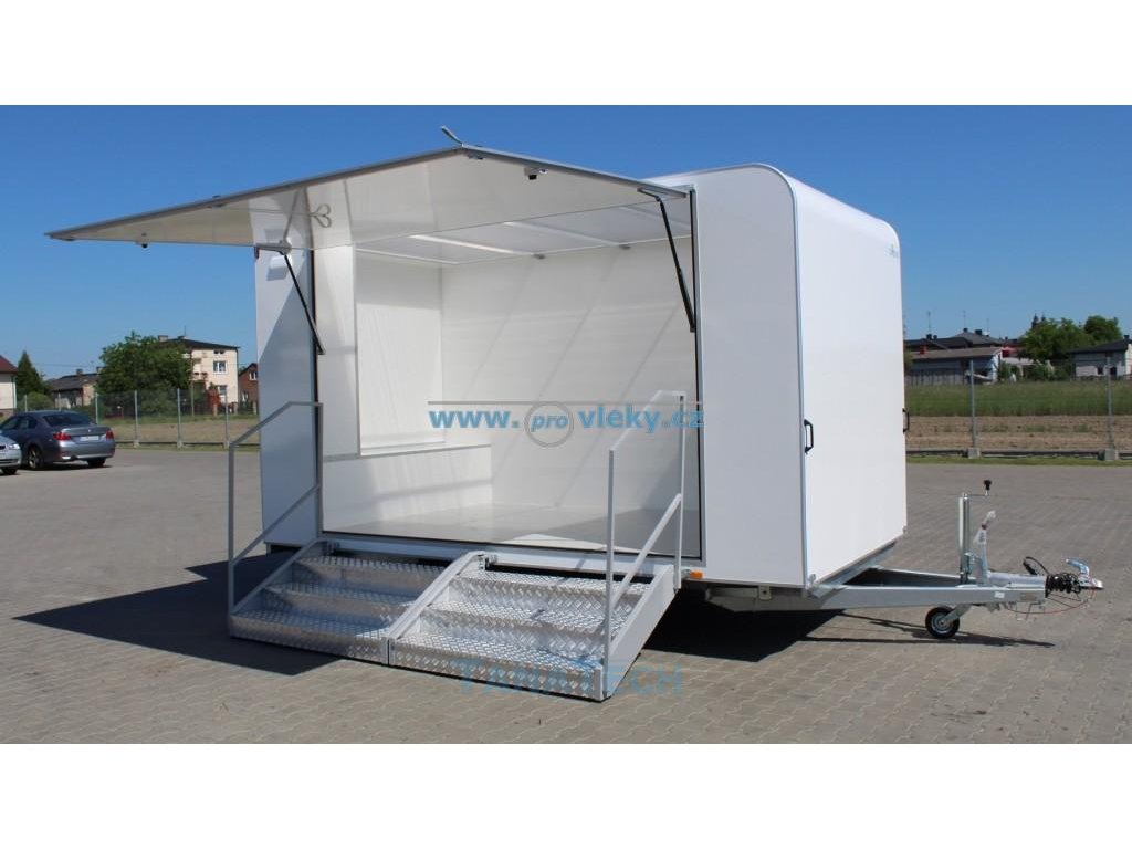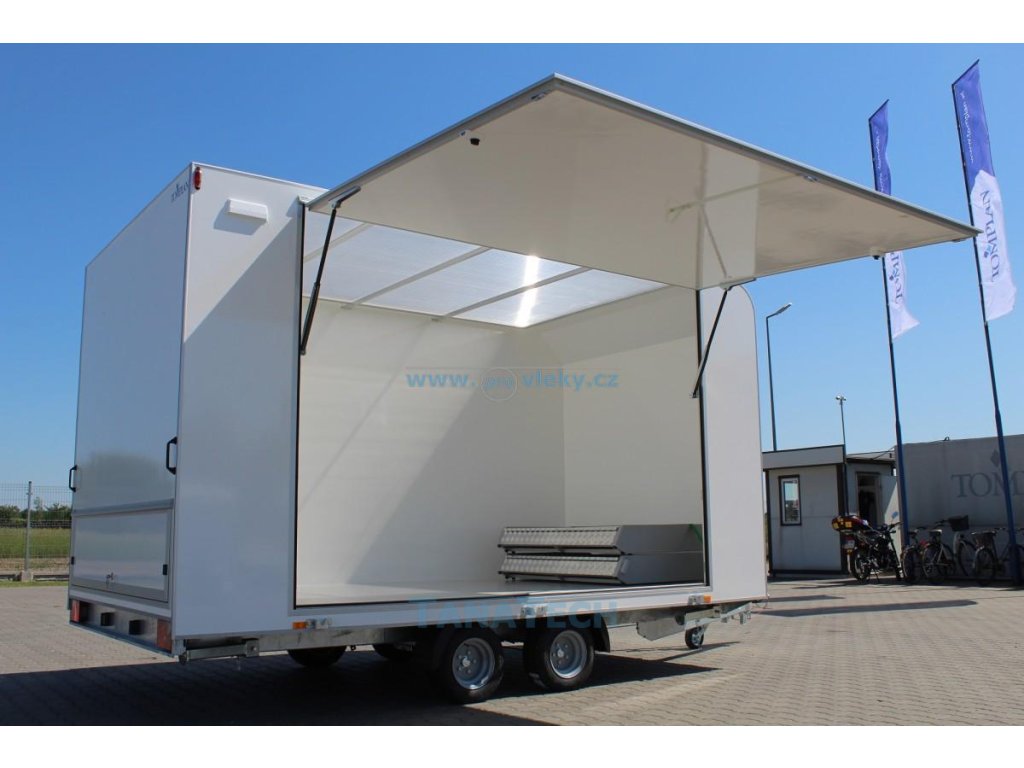Přívěs Tomplan TWSP 420T.00 2700kg 420x220cm. Výstavní skříňový stánek.