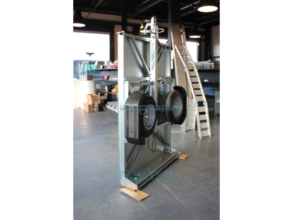 Díky chytrému mechanismu složíte přívěs během 2 minut a uložíte jej na výšku ke zdi v garáži, sklepě nebo přístřešku.