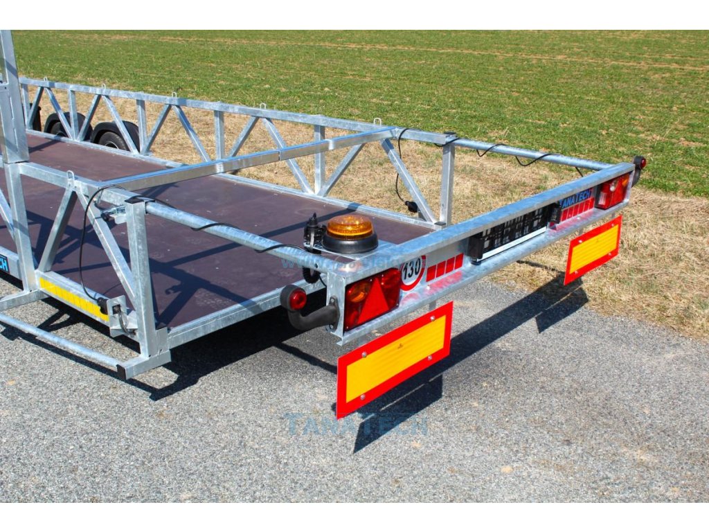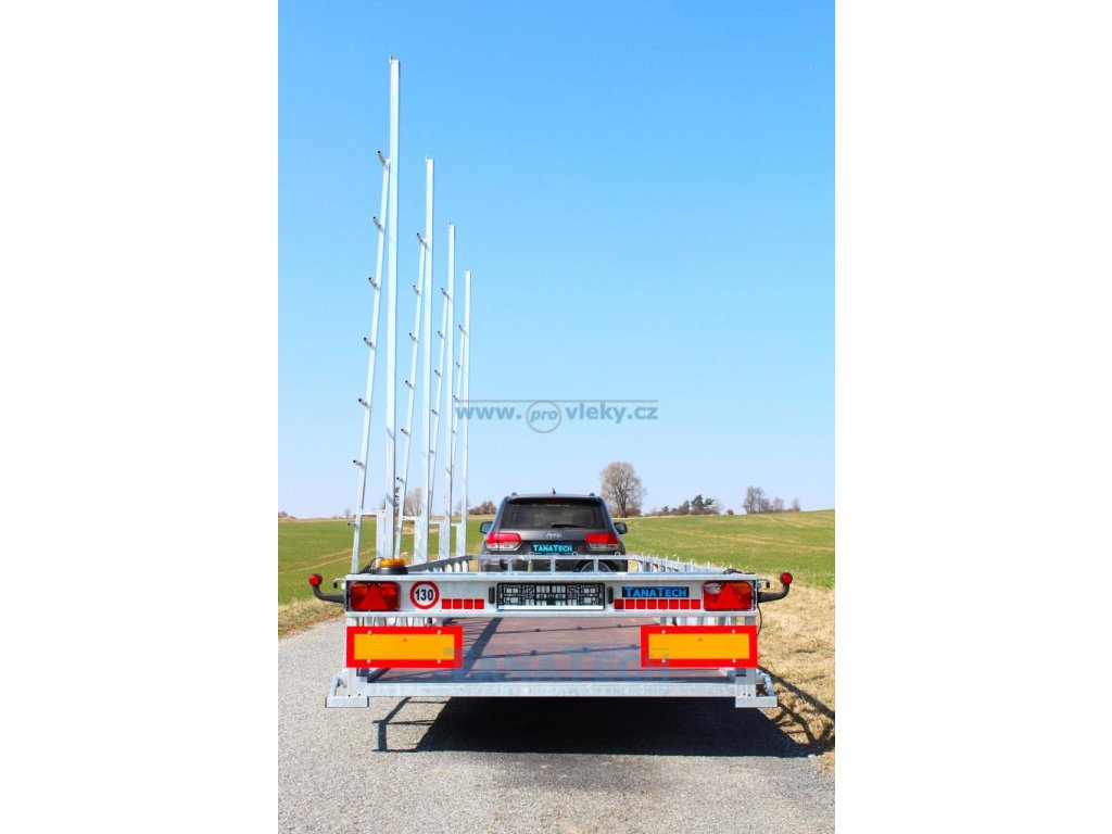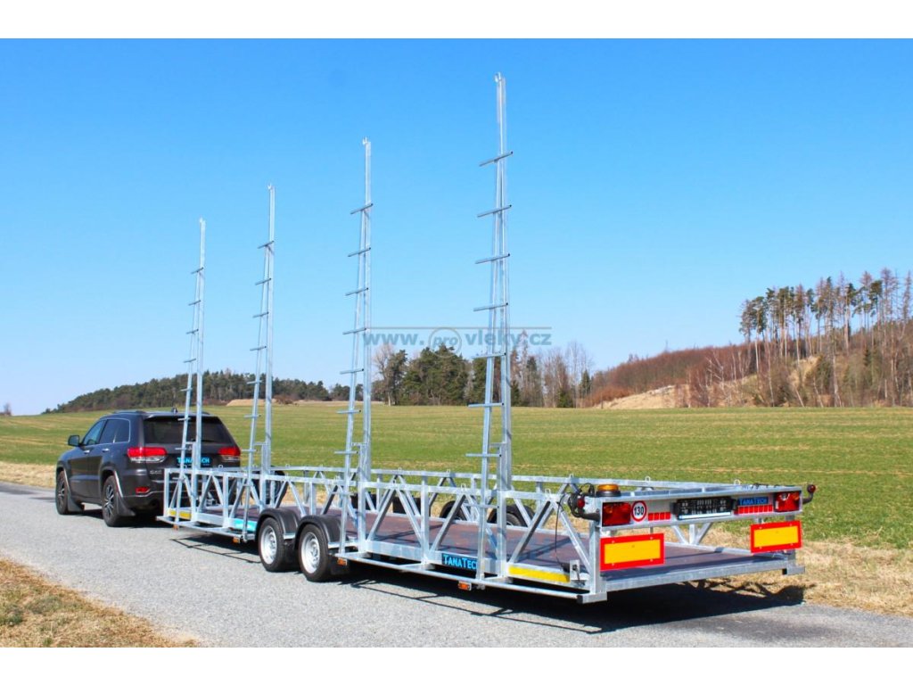 Speciální přívěs pro převoz bazénů s koly vedle ložné plochy. Přívěs je osazen brzdovým systémem AL-KO. Bočnice jsou z ocelových profilů, podlaha z vodovzdorné protiskluzové překližky. Konstrukce přívěsu žárové zinkování což dává přívěsu vysokou pevnost a dlouhou životnost. Zadní panel světel je výsuvný 1000 mm nebo odebírací. Standardně je přívěs vybaven nízkoprofilovými koly, aby byla dosažena co nejnižší výška ložné plochy.