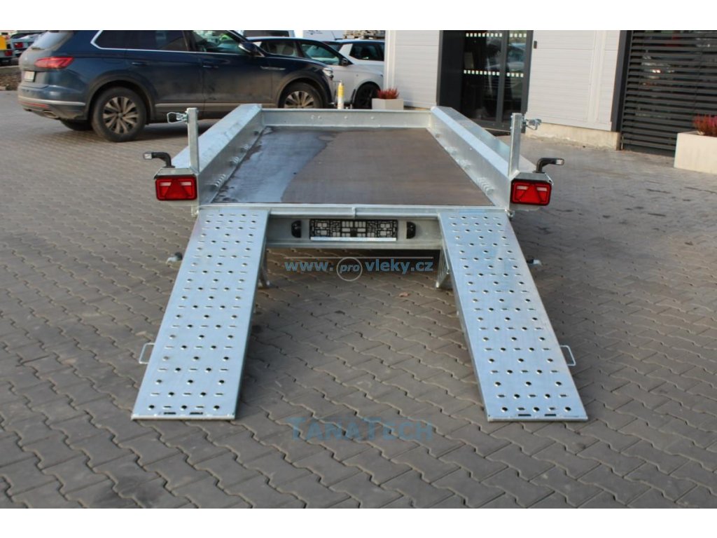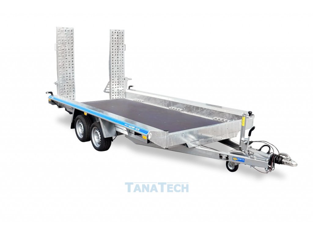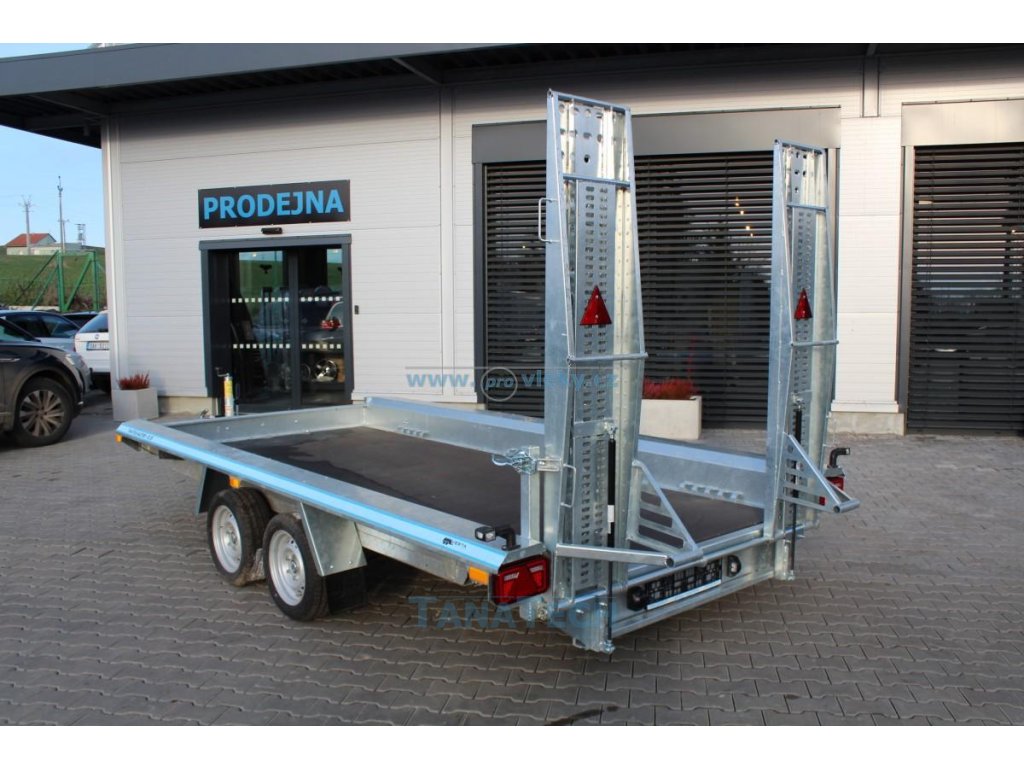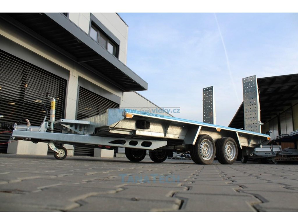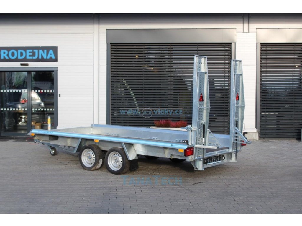 Robustní celosvařený přepravník bagrů s dlouhými nájezdy pro plynulý nájezd bagrem nebo jinou stavební technikou