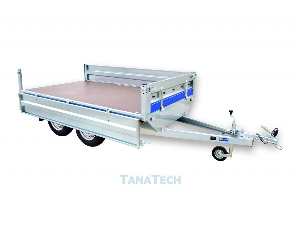 - Ocelové bočnice o výšce 370mm s možností odnímání. Možnost vytvořit plato. Sklopením bočnice z boku Vám usnadní nakládání vysokozdvižným vozíkem.