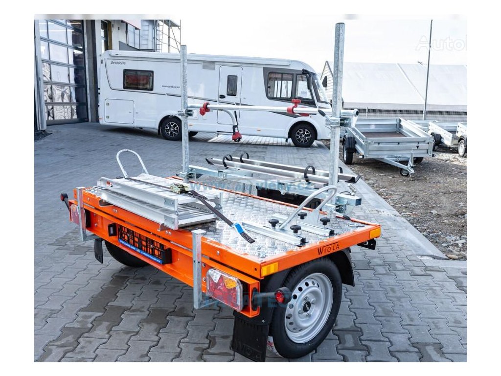 Přívěs Wiola Camper je určený nejen za obytná auta. Při velmi krátké délce umožní převoz 1 motocyklu nebo skútru spolu s 2 koly. Nechybí ani praktický box na kurty a jiné pomůcky. Zbytečně nezvyšuje celkovou délku jízdní soupravy.