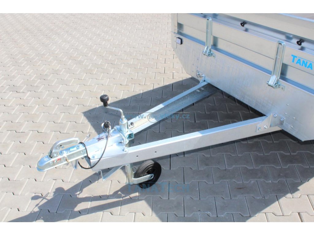 - Masivní montovaná kontrukce rámu s příčkami pod korbou přívěsu. "V" oje přívěsu.
