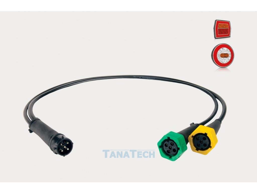 Díky propojovacímu kabel pro lampy Fristom s bajonetem (1 zelená zadní světlo + 1 žlutá mlhové/couvací světlo) jednoduše rozvedete 5 pinovou spojku kabeláže do zadní svítilny (typ FT-110 kód OSV504) a couvací svítilny (typ FT-112 kód 507) nebo do mlhové svítilny (FT-111 kód OSV508). Tímto propojem zapojíte kompletní osvětlení přívěsu vč. mlhového a couvavého osvětlení s elektro instalací přívěsu.