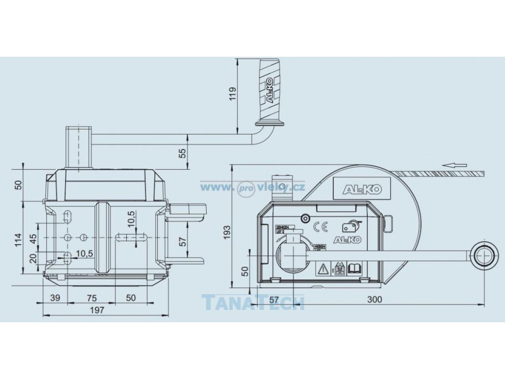 Naviják 901 A má jednoduše demontovatelnou kliku navíjení.