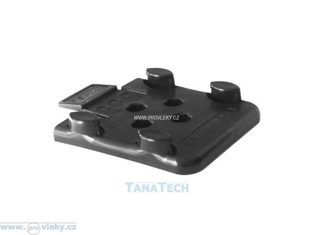 Držiak zakladacieho klinu DOMAR. Možno naskrutkovať alebo nanýtovat na príves - najčastejšie na prednej čelo, bočnicu alebo oja prívesu.