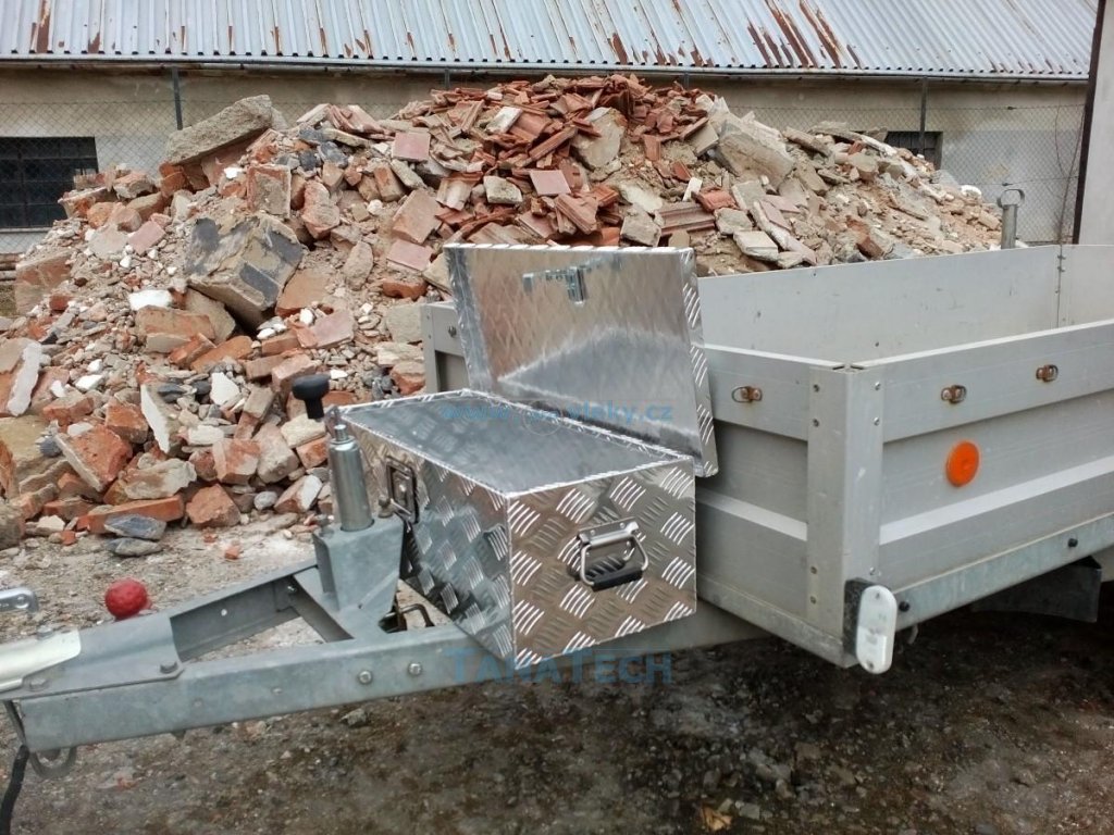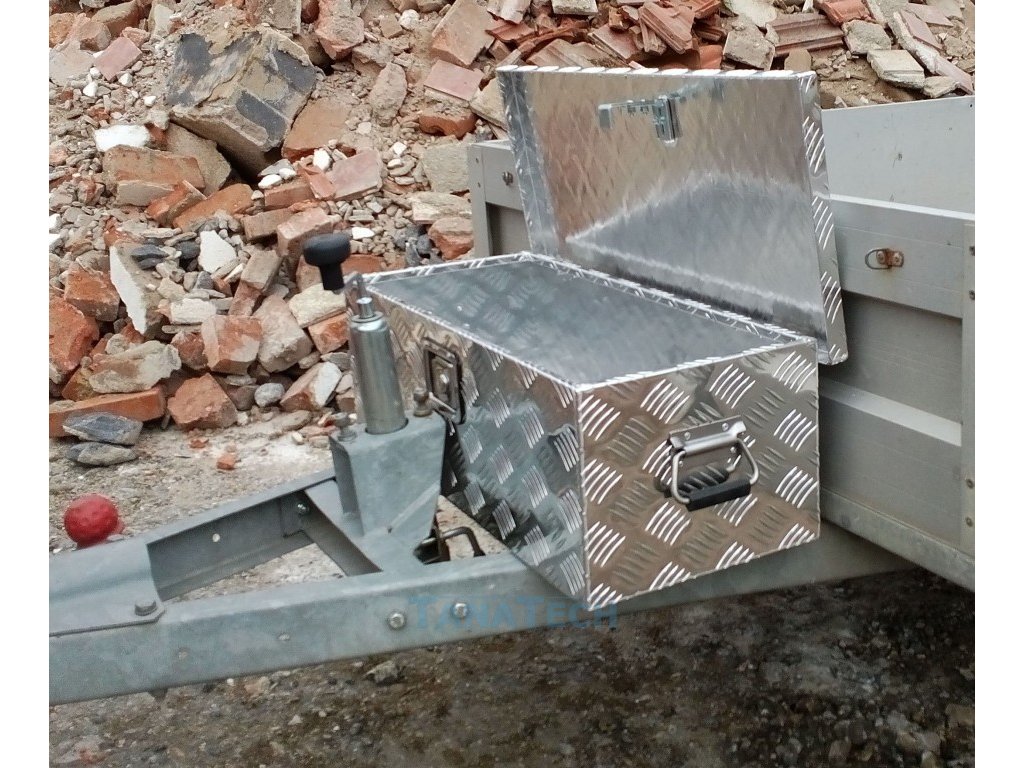 Hliníkový BOX na náradie, popruhy atď. so zámkom o vonkajšom rozmere dĺžka 760 výška 320 výška 245mmVnútorný rozmer dĺžka 740 šírka 300 výška 230mmVnútorný horný lem rozmer dĺžka 710 šírka 275mmTento box je možné upevniť napríklad na ťažné oje, bočnicu či pod ložnú plochu prívesu.Objem 60lZapustený zámok