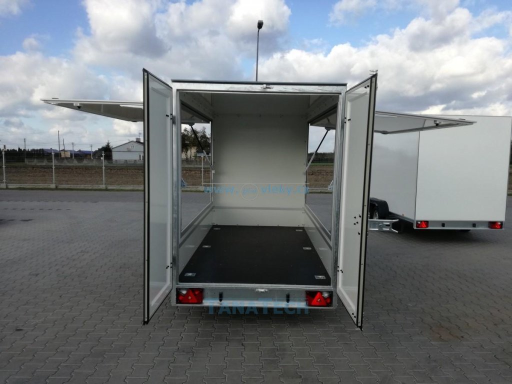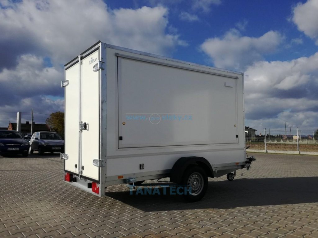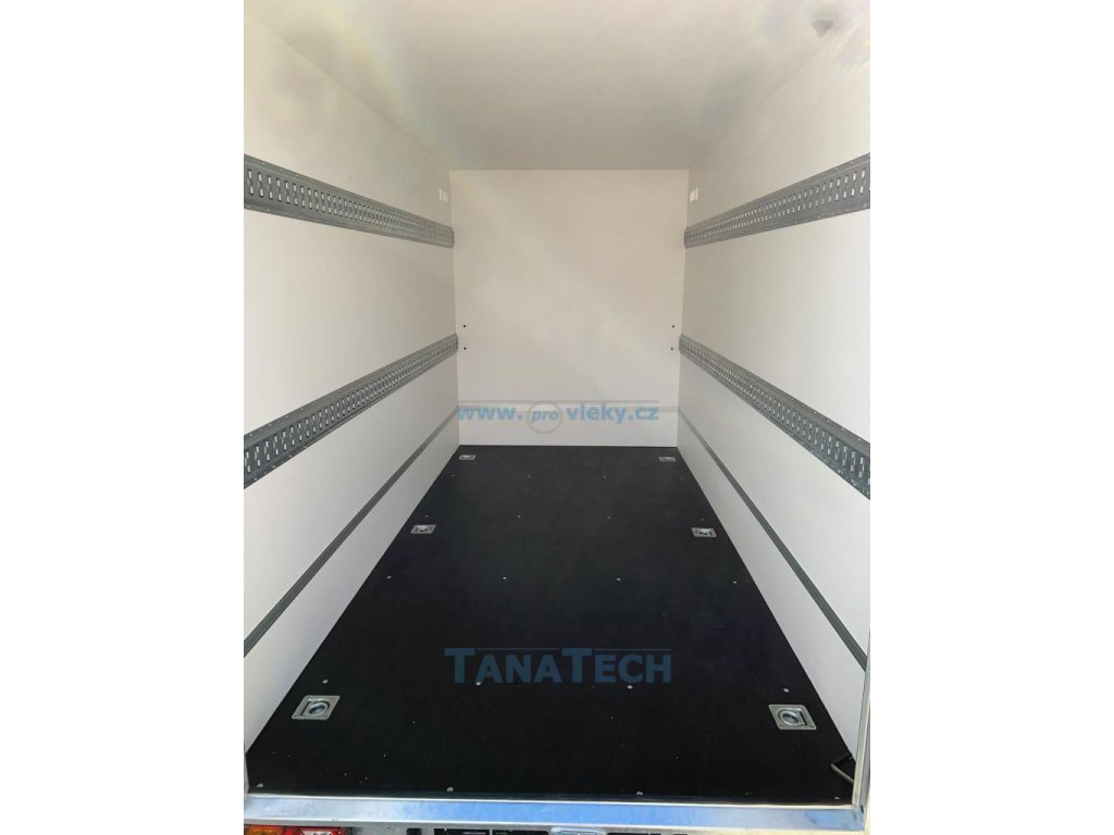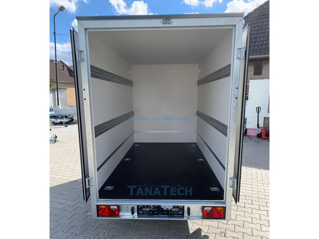 Nákladní brzděný skříňový přívěs z tuhé překližky 3m dlouhý