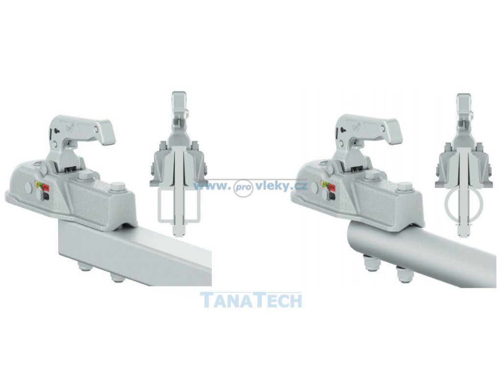 Univerzální montáž na trubkovou nebo jeklovou tažnou oj přívěsu.