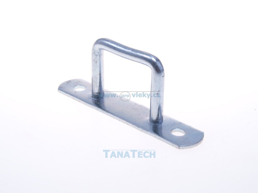 Třmen hranatý k provlečení celního lana plachty přívěsu; možnost upevnění drobných gumolan.