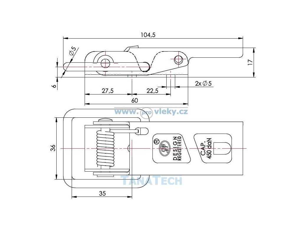Přaskový uzávěr ZB-06 pro zajištění bočnice přívěsu, víka, dvířek a podobně.