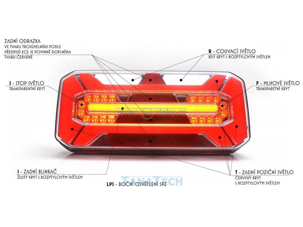 - Funkce: poziční zadní světlo / mlhovka / světlo couvání / světlo brzdění / zadní směrovka / odrazky / boční osvětlení SPZ
